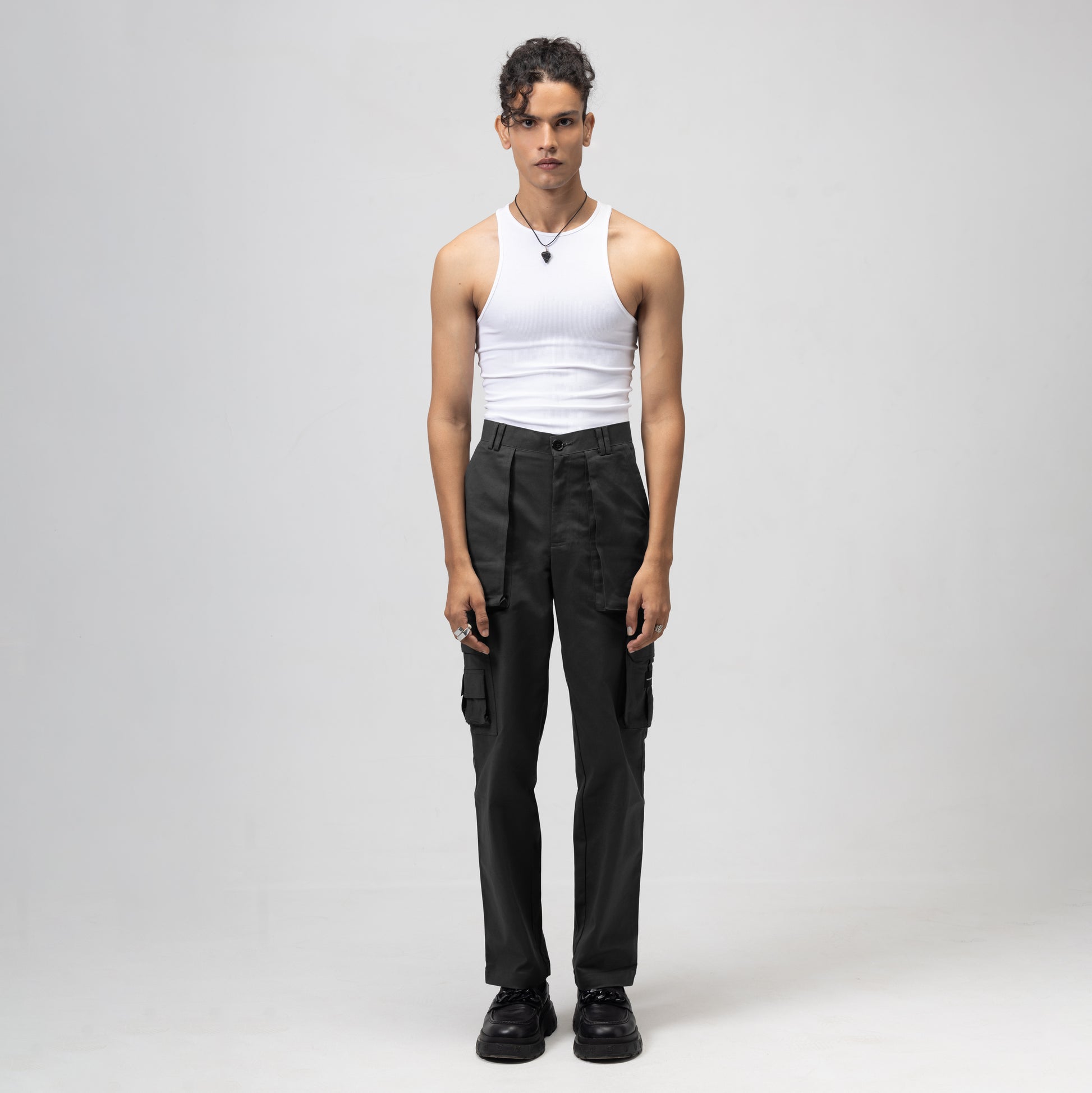 The Cargo Type-2 design is made in a tapered fit pattern and crafted in a 100% cotton fabric. The top pockets feature a minimal harmonium detail, while the pockets on the middle section are relatively intricate, having a reverse box pleat detail, a Warping Theories woven label on the left side and overlapping 3D pockets on the right side.