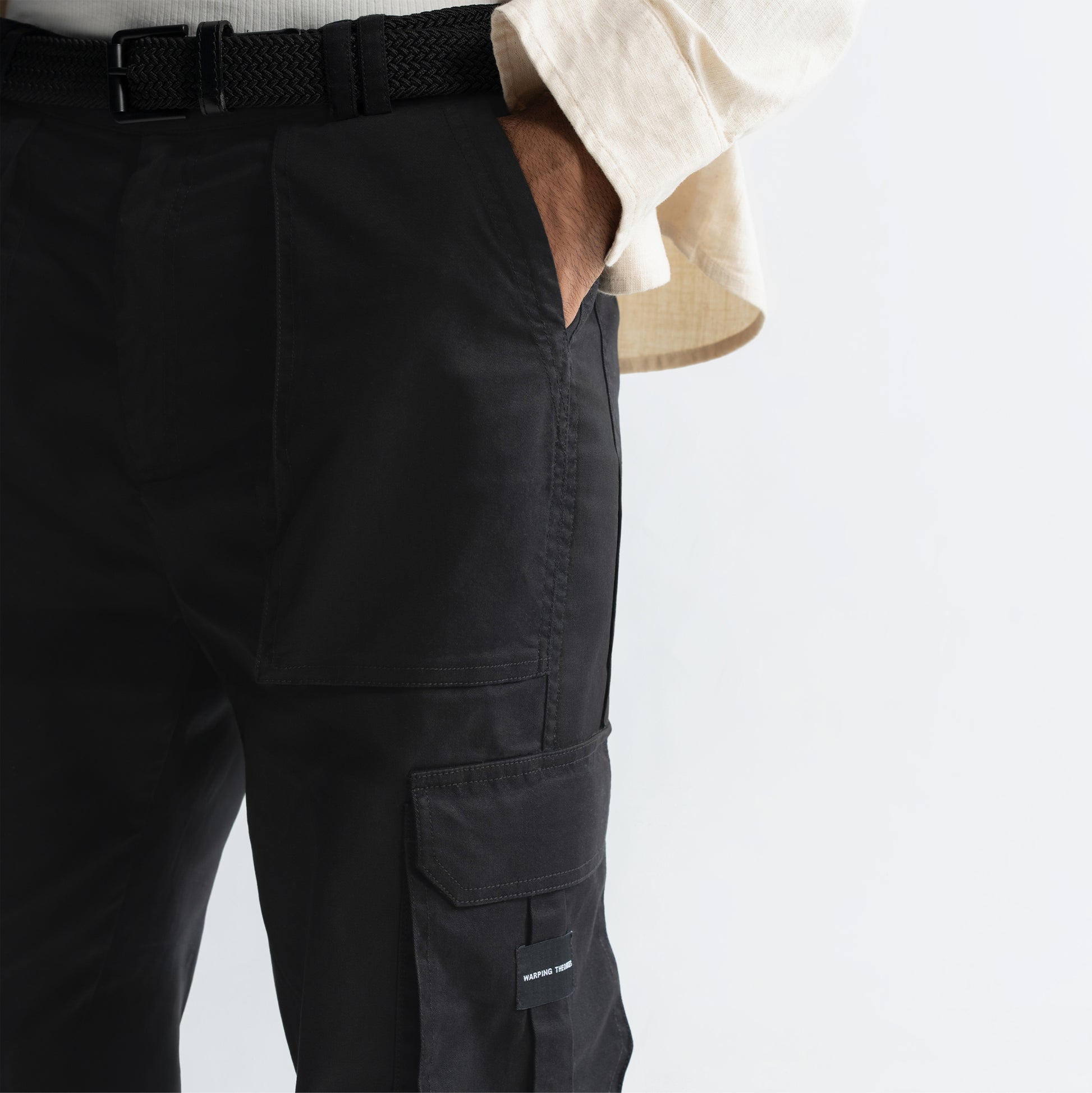 The Cargo Type-2 design is made in a tapered fit pattern and crafted in a 100% cotton fabric. The top pockets feature a minimal harmonium detail, while the pockets on the middle section are relatively intricate, having a reverse box pleat detail, a Warping Theories woven label on the left side and overlapping 3D pockets on the right side.
