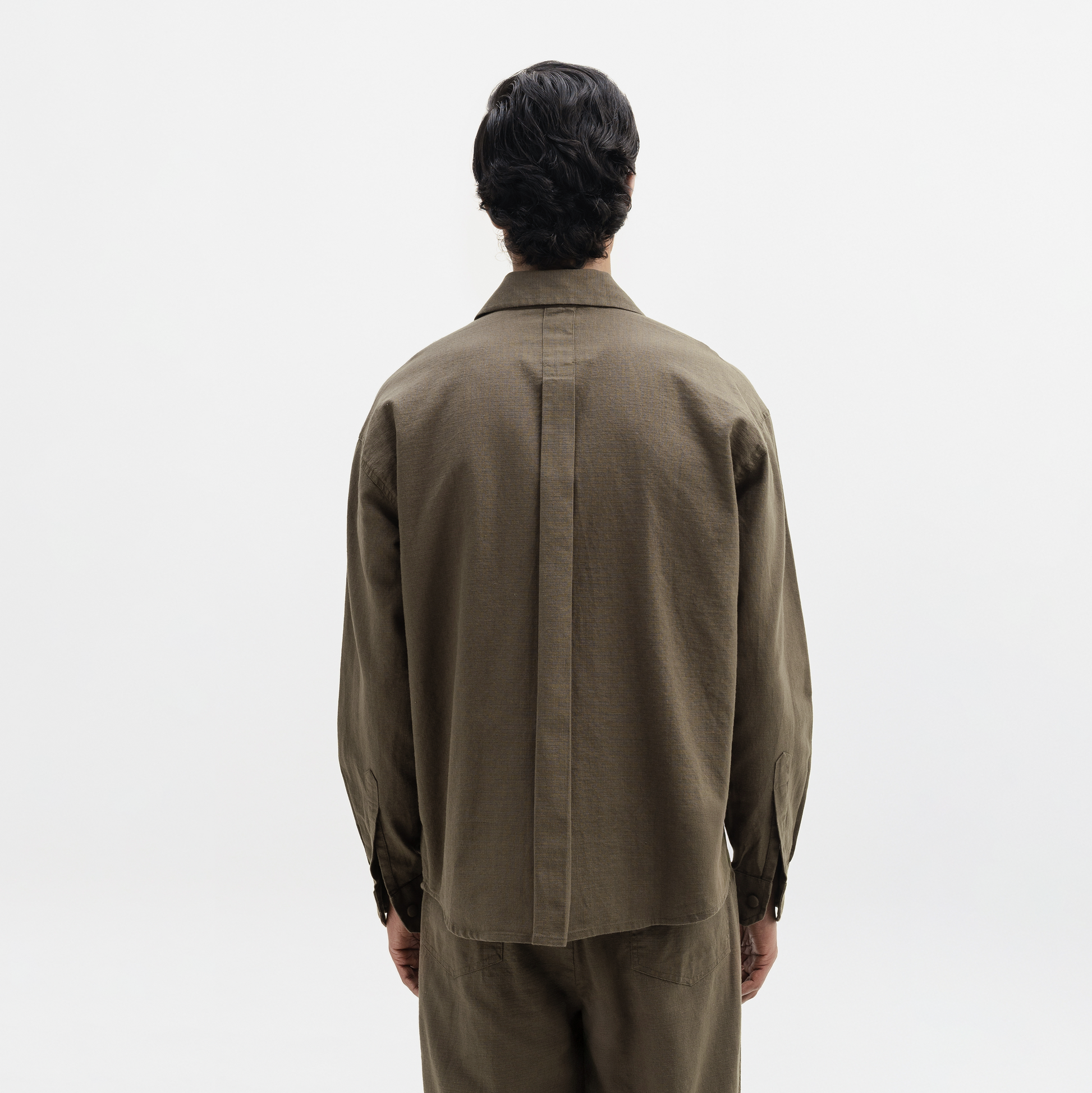 Crafted from cotton with a subtle crushed effect, this shirt features an extended placket panel and minimal fabric buttons that adds a refined touch. A seamlessly integrated pocket within the panel enhances functionality while maintaining a clean aesthetic. Finished with a classic spread collar for a versatile look.