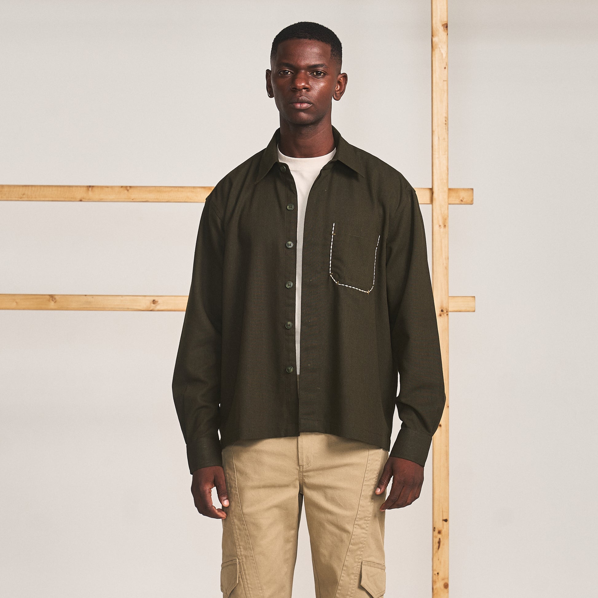 This crisp cotton-polyester blended shirt is made with pocket design as the key highlight, featuring a contrast running stitch on the borders and corners tacked with tonal thread. The shirt comes with concealed placket and a classic two piece collar.
