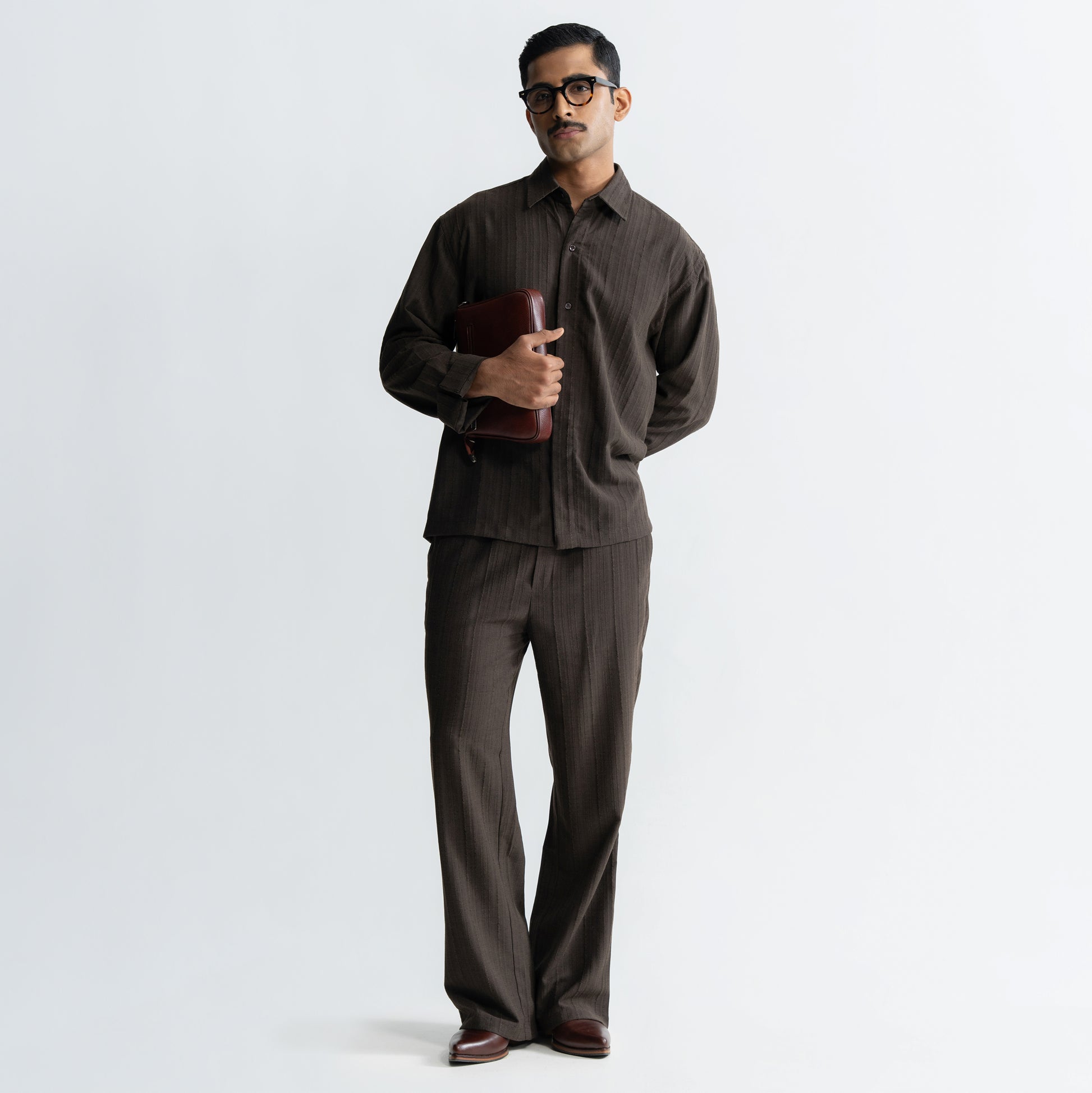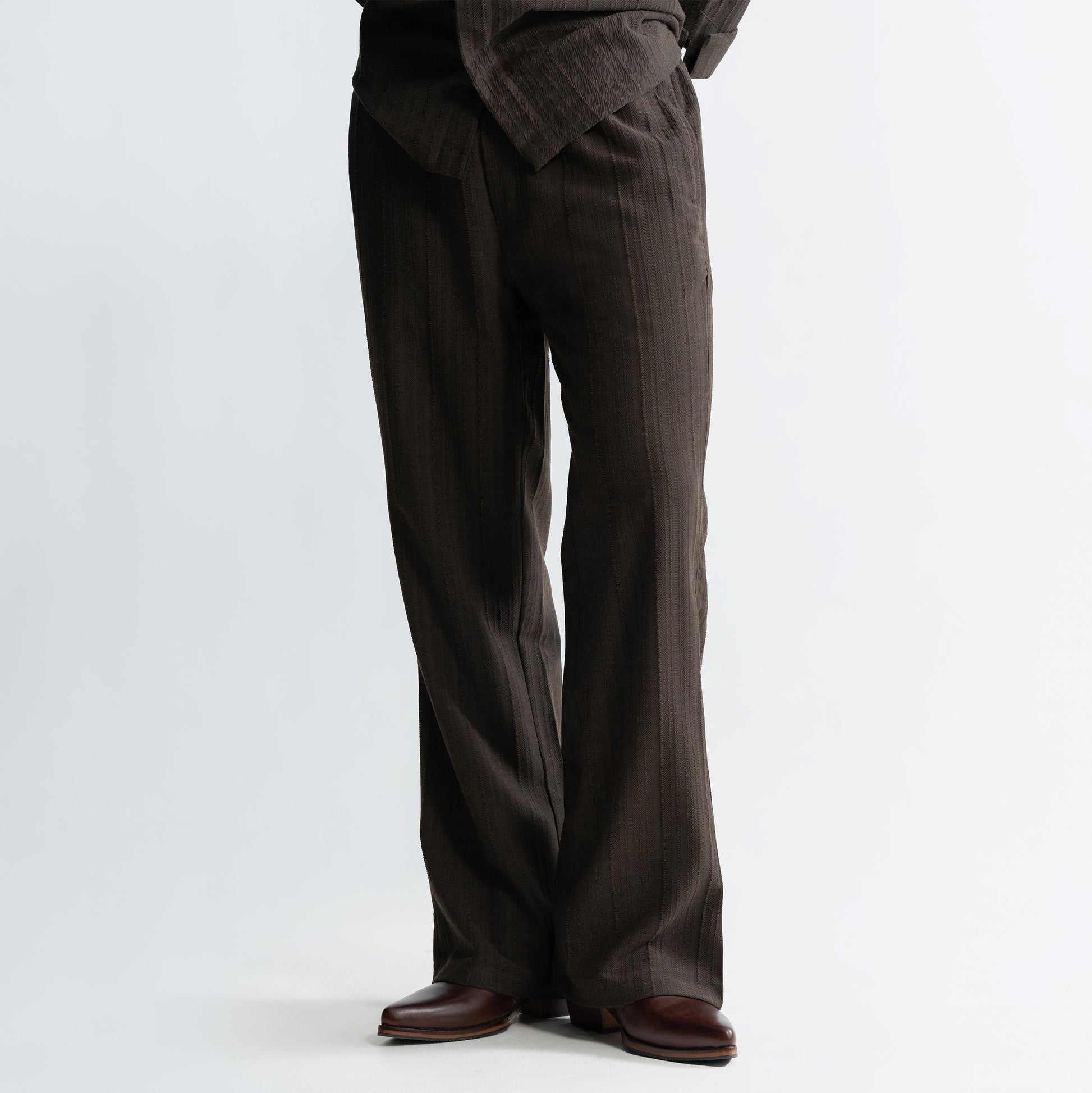 Crafted from a self-jacquard fabric with a twisted stripe texture, the Twine Pants feature a tailored silhouette. The elasticated drawstring waist adds ease, while the relaxed fit grounds the piece in everyday wear.