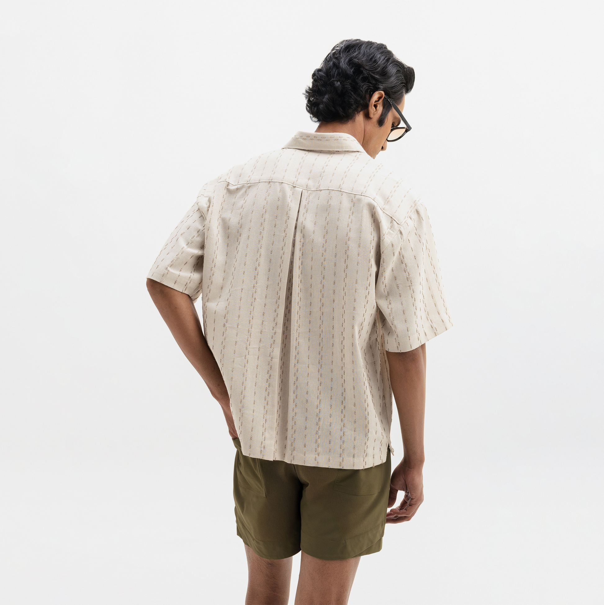 Made from a distinctive fabric woven with thicker twisted yarns, this shirt offers a rich texture and depth. Pintuck details at the front add a refined touch, while a patch pocket provides a balanced finish.